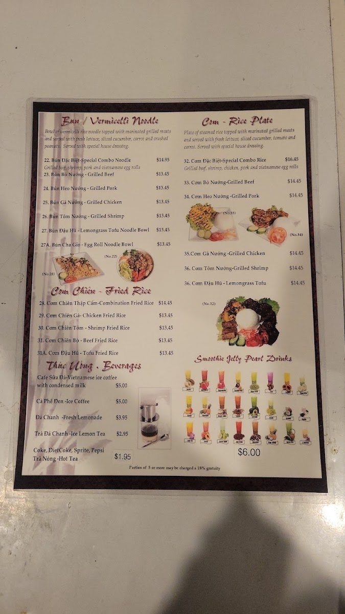 “ Absolutely delicious. It's best pho broth, that's full of deep flavor and not bland nor salty. The mango boba is my fav, the peach is ok. The staff are always attentive, nice and the service is quick upon placing your order. ”